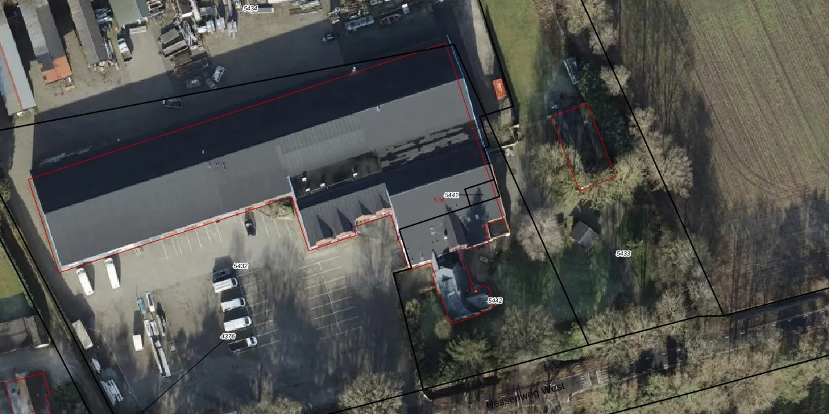 Het perceel waarop Hessenweg West 5 staat heeft een oppervlakte van 7815 m². Dit is een zeer groot perceel. De perceeloppervlakte wordt geregistreerd door het Kadaster. Gedetailleerde informatie over de maten van dit perceel kunt u vinden in het rapport Kadastrale kaart met maatvoering van Hessenweg West 5.