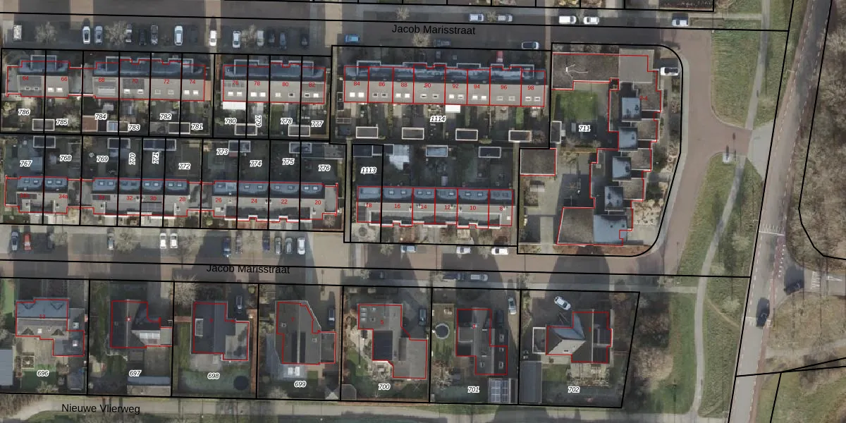 Het perceel waarop Jacob Marisstraat 14 staat heeft een oppervlakte van 1993 m². Dit is een zeer groot perceel. De perceeloppervlakte wordt geregistreerd door het Kadaster. Gedetailleerde informatie over de maten van dit perceel kunt u vinden in het rapport Kadastrale kaart met maatvoering van Jacob Marisstraat 14.