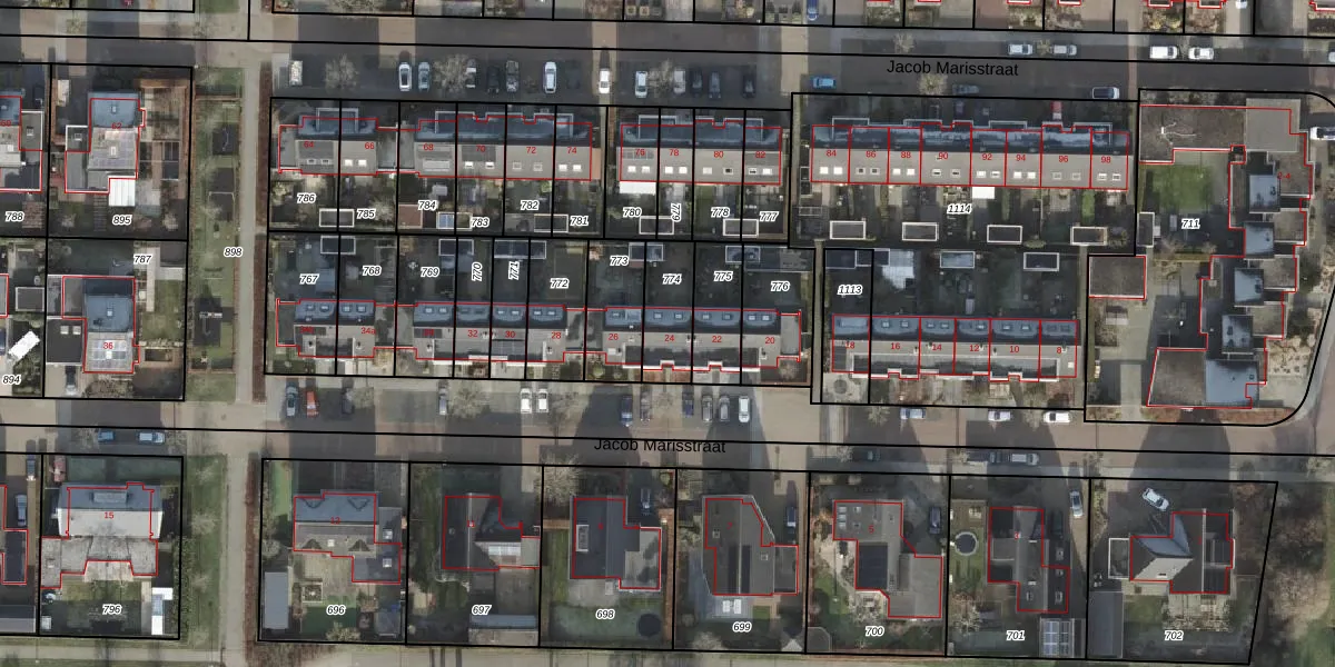 Het perceel waarop Jacob Marisstraat 24 staat heeft een oppervlakte van 156 m². Dit is een middelgroot perceel. De perceeloppervlakte wordt geregistreerd door het Kadaster. Gedetailleerde informatie over de maten van dit perceel kunt u vinden in het rapport Kadastrale kaart met maatvoering van Jacob Marisstraat 24.