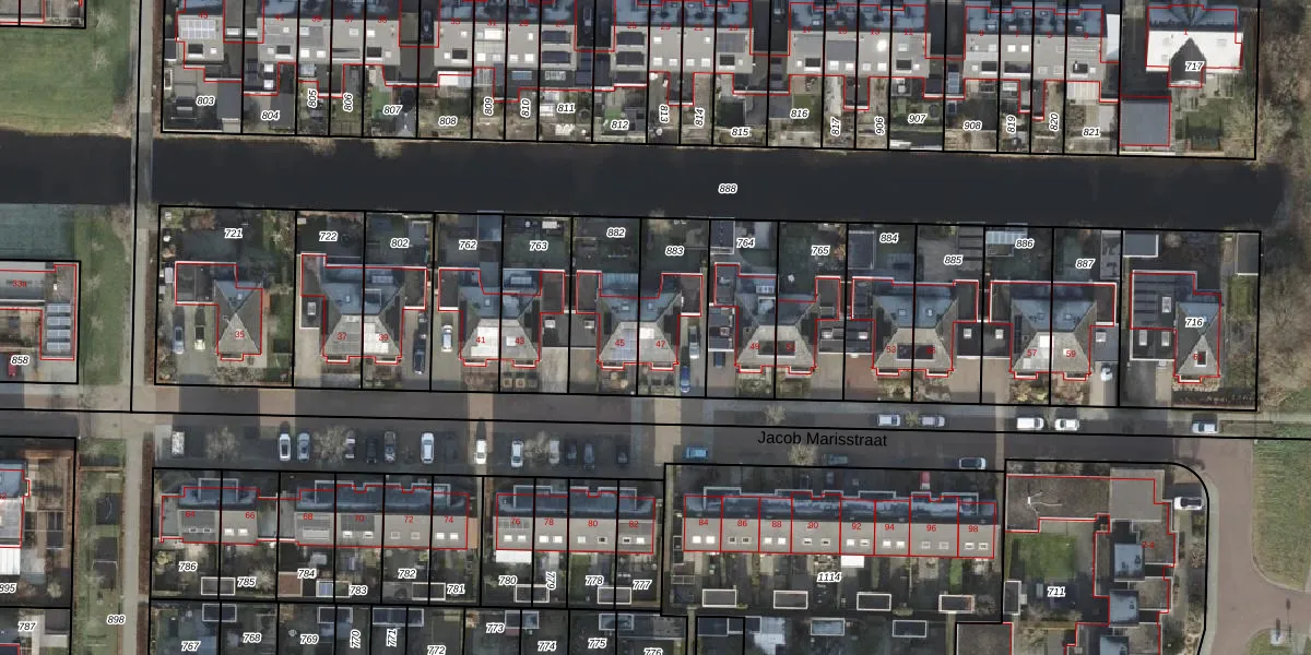 Het perceel waarop Jacob Marisstraat 47 staat heeft een oppervlakte van 286 m². Dit is een middelgroot perceel. De perceeloppervlakte wordt geregistreerd door het Kadaster. Gedetailleerde informatie over de maten van dit perceel kunt u vinden in het rapport Kadastrale kaart met maatvoering van Jacob Marisstraat 47.