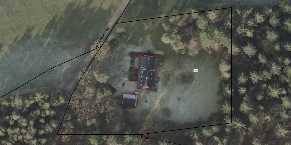 Het perceel waarop Junnerveldweg 1 staat heeft een oppervlakte van 8004 m². Dit is een zeer groot perceel. De perceeloppervlakte wordt geregistreerd door het Kadaster. Gedetailleerde informatie over de maten van dit perceel kunt u vinden in het rapport Kadastrale kaart met maatvoering van Junnerveldweg 1.