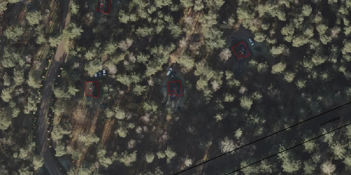 Het perceel waarop Junnerweg 1-2 staat heeft een oppervlakte van 1,63 km². Dit is een zeer groot perceel. De perceeloppervlakte wordt geregistreerd door het Kadaster. Gedetailleerde informatie over de maten van dit perceel kunt u vinden in het rapport Kadastrale kaart met maatvoering van Junnerweg 1-2.