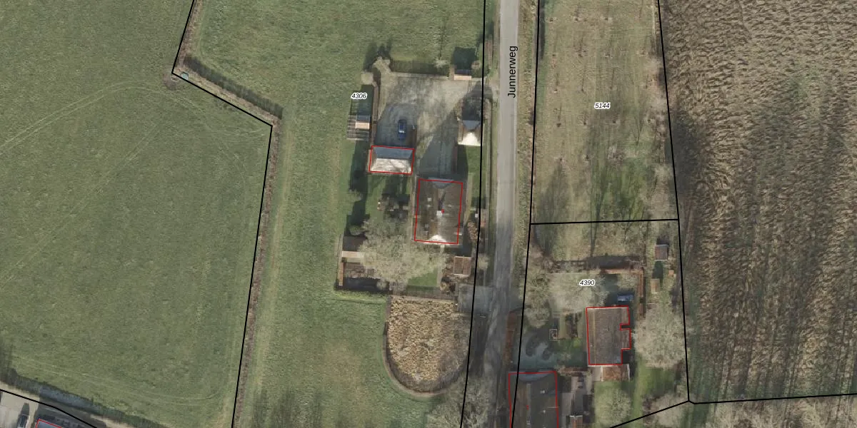 Het perceel waarop Junnerweg 8 staat heeft een oppervlakte van 8320 m². Dit is een zeer groot perceel. De perceeloppervlakte wordt geregistreerd door het Kadaster. Gedetailleerde informatie over de maten van dit perceel kunt u vinden in het rapport Kadastrale kaart met maatvoering van Junnerweg 8.