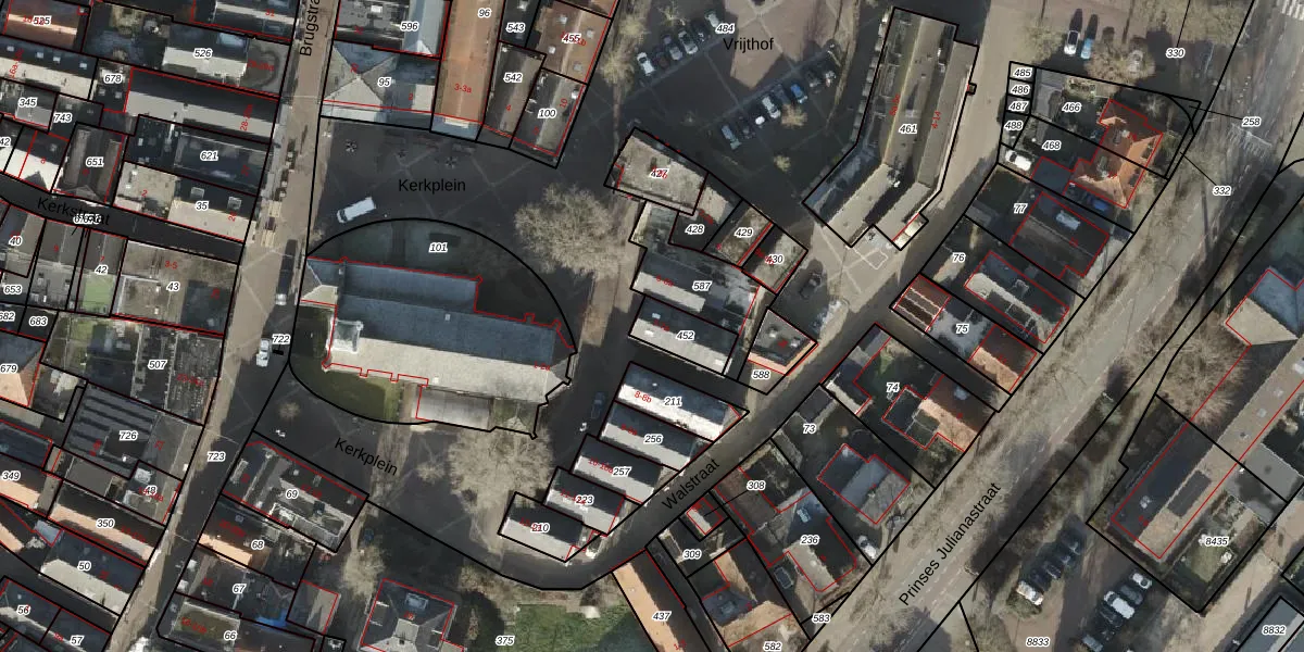 Het perceel waarop Kerkplein 7-a staat heeft een oppervlakte van 102 m². Dit is een middelgroot perceel. De perceeloppervlakte wordt geregistreerd door het Kadaster. Gedetailleerde informatie over de maten van dit perceel kunt u vinden in het rapport Kadastrale kaart met maatvoering van Kerkplein 7-a.