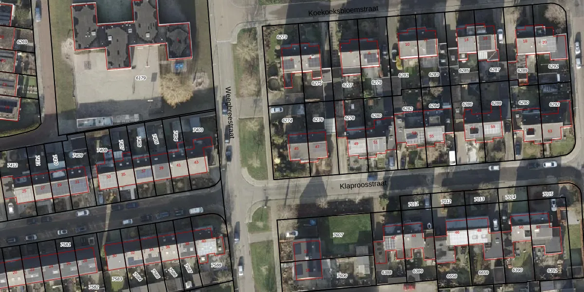 Gebruik de zoekbalk of klik op een perceel voor informatie over de adressen binnen dit perceel.
