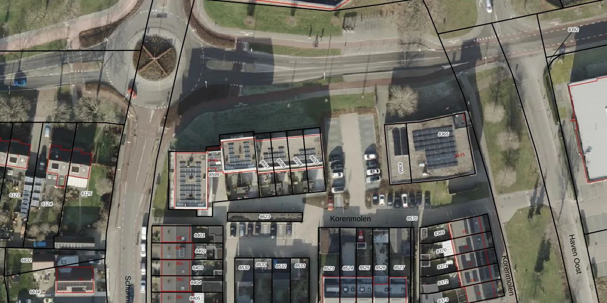 Het perceel waarop Korenmolen 23 staat heeft een oppervlakte van 115 m². Dit is een middelgroot perceel. De perceeloppervlakte wordt geregistreerd door het Kadaster. Gedetailleerde informatie over de maten van dit perceel kunt u vinden in het rapport Kadastrale kaart met maatvoering van Korenmolen 23.