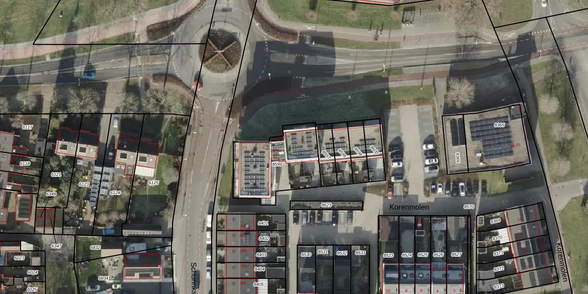 Het perceel waarop Korenmolen 28 staat heeft een oppervlakte van 603 m². Dit is een groot perceel. De perceeloppervlakte wordt geregistreerd door het Kadaster. Gedetailleerde informatie over de maten van dit perceel kunt u vinden in het rapport Kadastrale kaart met maatvoering van Korenmolen 28.