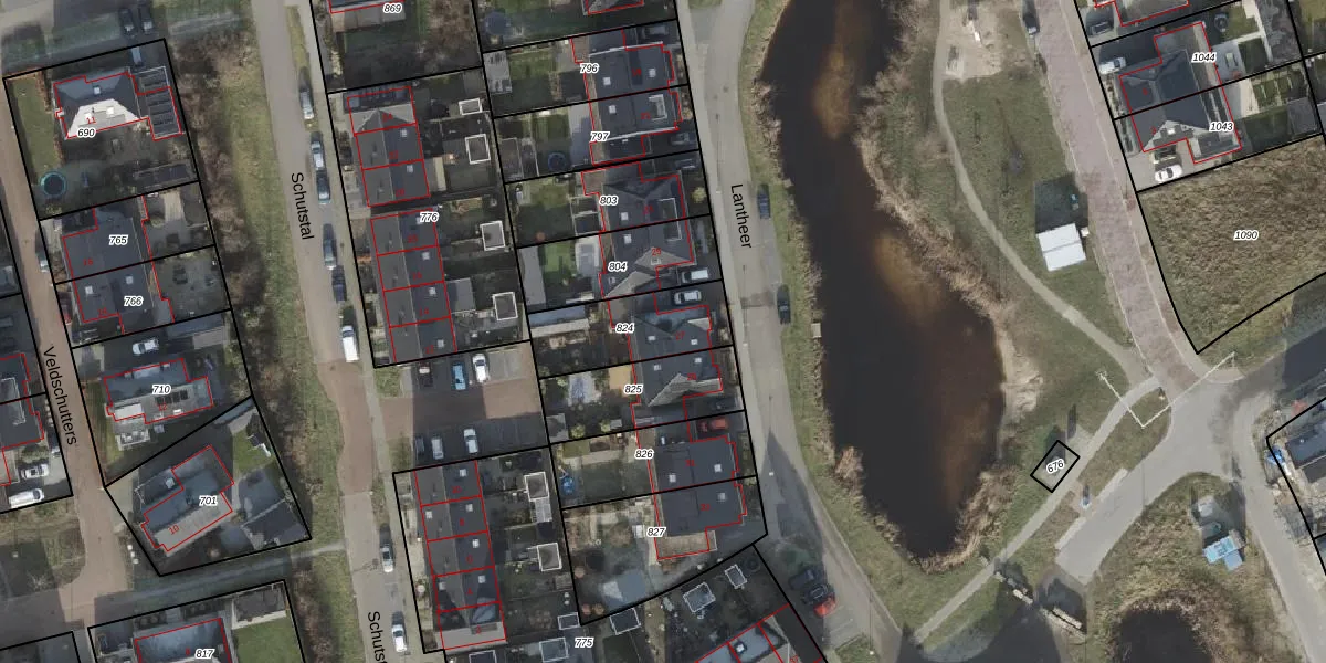 Het perceel waarop Lantheer 27 staat heeft een oppervlakte van 300 m². Dit is een groot perceel. De perceeloppervlakte wordt geregistreerd door het Kadaster. Gedetailleerde informatie over de maten van dit perceel kunt u vinden in het rapport Kadastrale kaart met maatvoering van Lantheer 27.