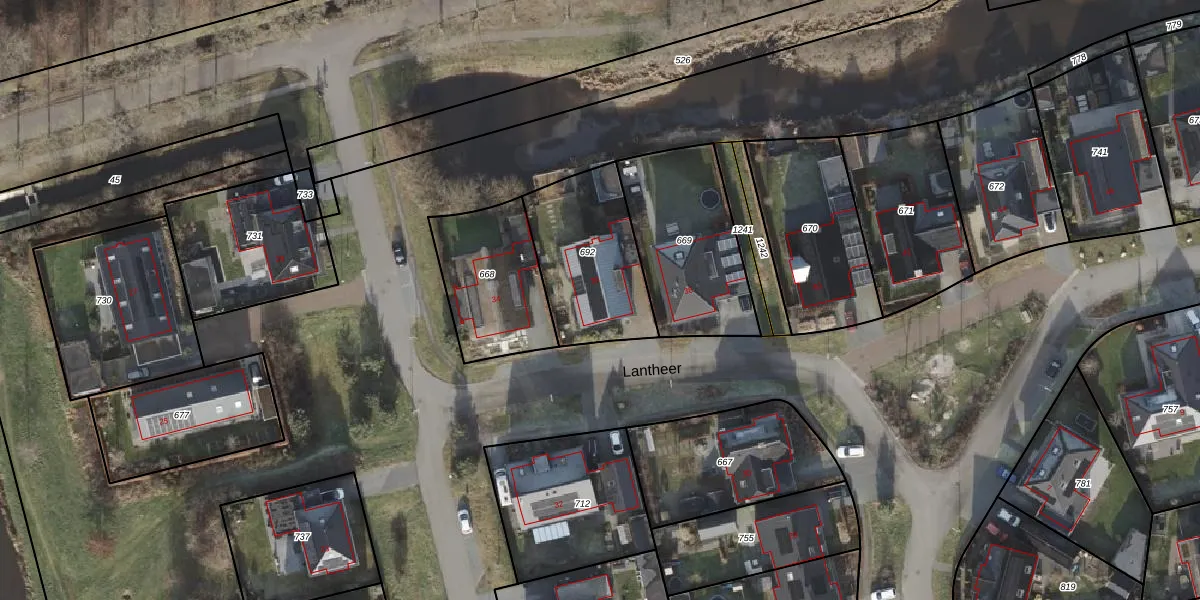 Het perceel waarop Lantheer 36 staat heeft een oppervlakte van 466 m². Dit is een groot perceel. De perceeloppervlakte wordt geregistreerd door het Kadaster. Gedetailleerde informatie over de maten van dit perceel kunt u vinden in het rapport Kadastrale kaart met maatvoering van Lantheer 36.