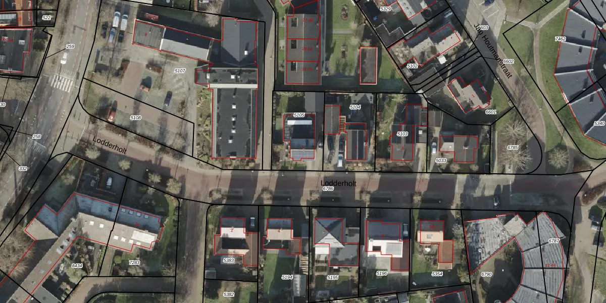 Het perceel waarop Lodderholt 1 staat heeft een oppervlakte van 447 m². Dit is een groot perceel. De perceeloppervlakte wordt geregistreerd door het Kadaster. Gedetailleerde informatie over de maten van dit perceel kunt u vinden in het rapport Kadastrale kaart met maatvoering van Lodderholt 1.