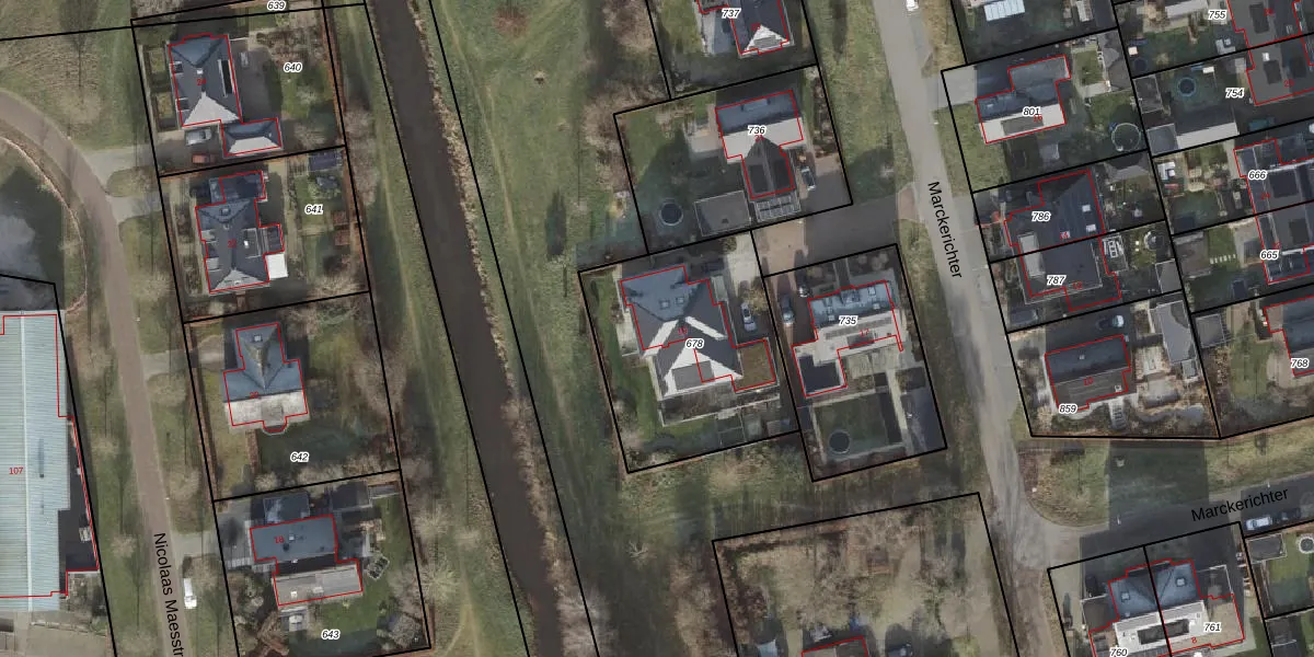 Het perceel waarop Marckerichter 19 staat heeft een oppervlakte van 850 m². Dit is een groot perceel. De perceeloppervlakte wordt geregistreerd door het Kadaster. Gedetailleerde informatie over de maten van dit perceel kunt u vinden in het rapport Kadastrale kaart met maatvoering van Marckerichter 19.