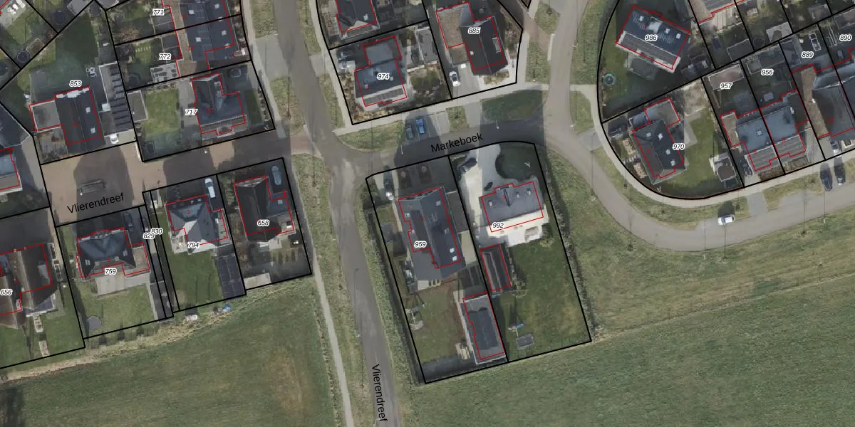 Gebruik de zoekbalk of klik op een perceel voor informatie over de adressen binnen dit perceel.