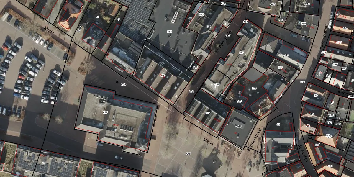 Het perceel waarop Markt 21-a staat heeft een oppervlakte van 680 m². Dit is een groot perceel. De perceeloppervlakte wordt geregistreerd door het Kadaster. Gedetailleerde informatie over de maten van dit perceel kunt u vinden in het rapport Kadastrale kaart met maatvoering van Markt 21-a.