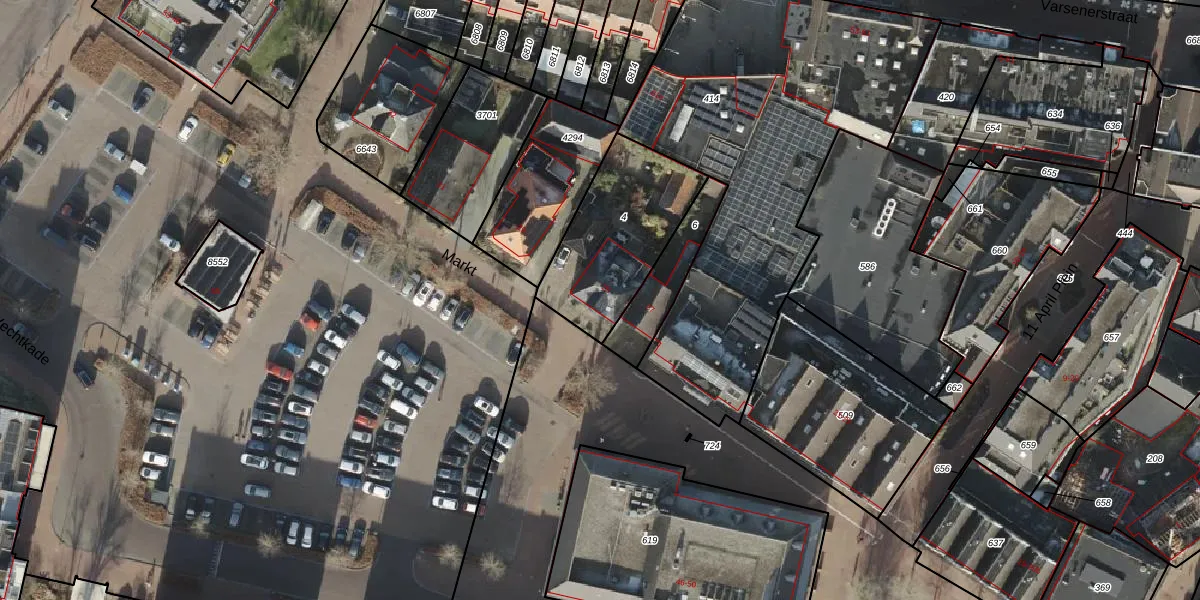 Het perceel waarop Markt 28 staat heeft een oppervlakte van 495 m². Dit is een groot perceel. De perceeloppervlakte wordt geregistreerd door het Kadaster. Gedetailleerde informatie over de maten van dit perceel kunt u vinden in het rapport Kadastrale kaart met maatvoering van Markt 28.