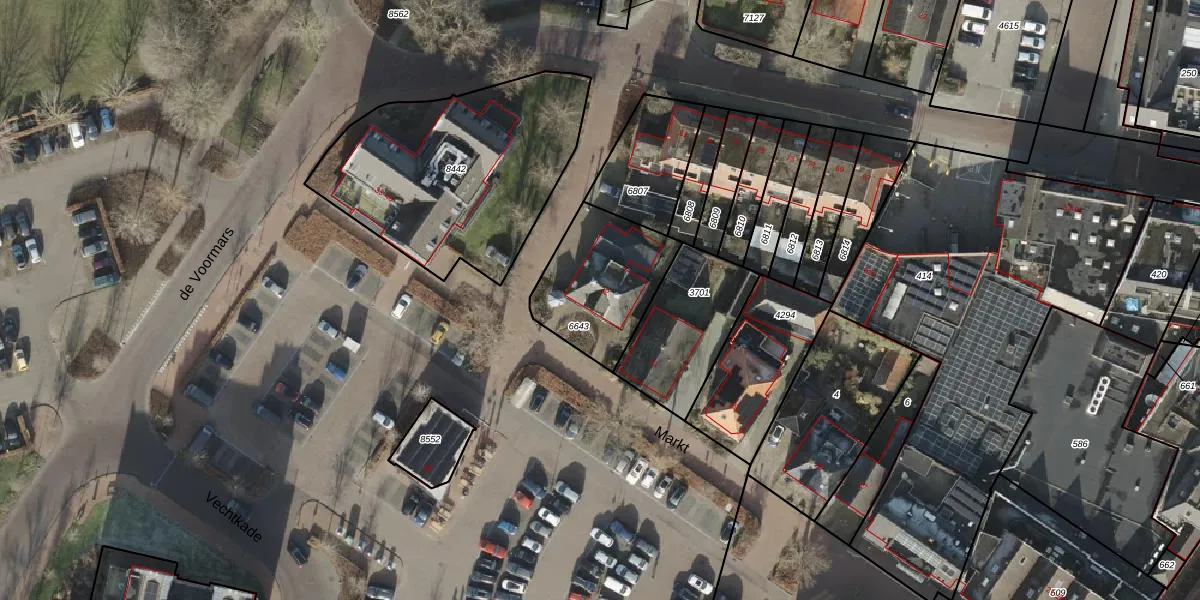 Het perceel waarop Markt 32 staat heeft een oppervlakte van 388 m². Dit is een groot perceel. De perceeloppervlakte wordt geregistreerd door het Kadaster. Gedetailleerde informatie over de maten van dit perceel kunt u vinden in het rapport Kadastrale kaart met maatvoering van Markt 32.