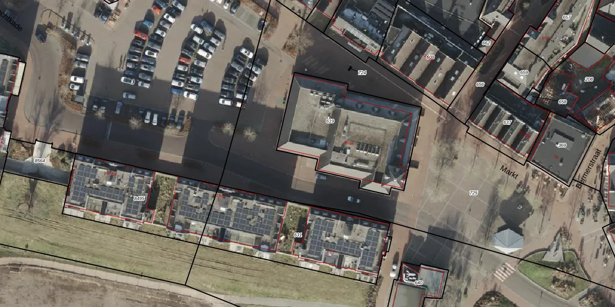 Het perceel waarop Markt 46 staat heeft een oppervlakte van 1208 m². Dit is een zeer groot perceel. De perceeloppervlakte wordt geregistreerd door het Kadaster. Gedetailleerde informatie over de maten van dit perceel kunt u vinden in het rapport Kadastrale kaart met maatvoering van Markt 46.