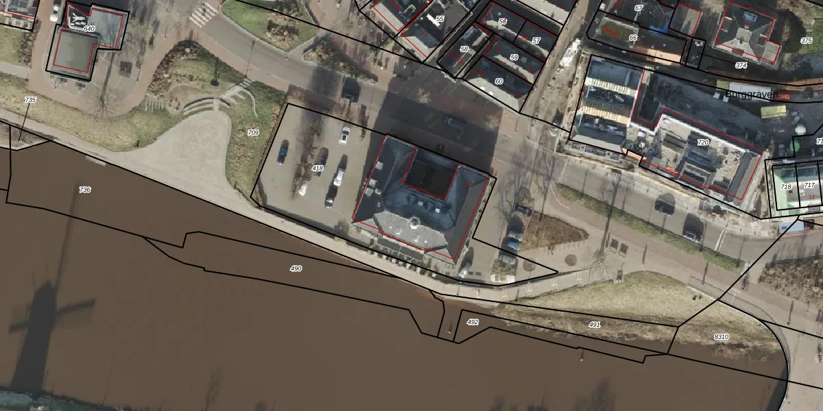 Het perceel waarop Markt 5 staat heeft een oppervlakte van 1608 m². Dit is een zeer groot perceel. De perceeloppervlakte wordt geregistreerd door het Kadaster. Gedetailleerde informatie over de maten van dit perceel kunt u vinden in het rapport Kadastrale kaart met maatvoering van Markt 5.