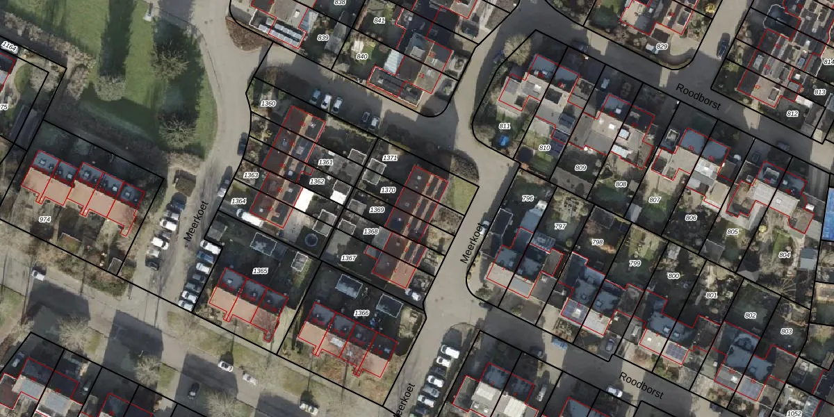 Gebruik de zoekbalk of klik op een perceel voor informatie over de adressen binnen dit perceel.