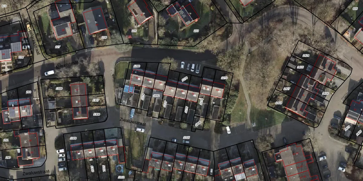 Het perceel waarop Merelstraat 75 staat heeft een oppervlakte van 169 m². Dit is een middelgroot perceel. De perceeloppervlakte wordt geregistreerd door het Kadaster. Gedetailleerde informatie over de maten van dit perceel kunt u vinden in het rapport Kadastrale kaart met maatvoering van Merelstraat 75.