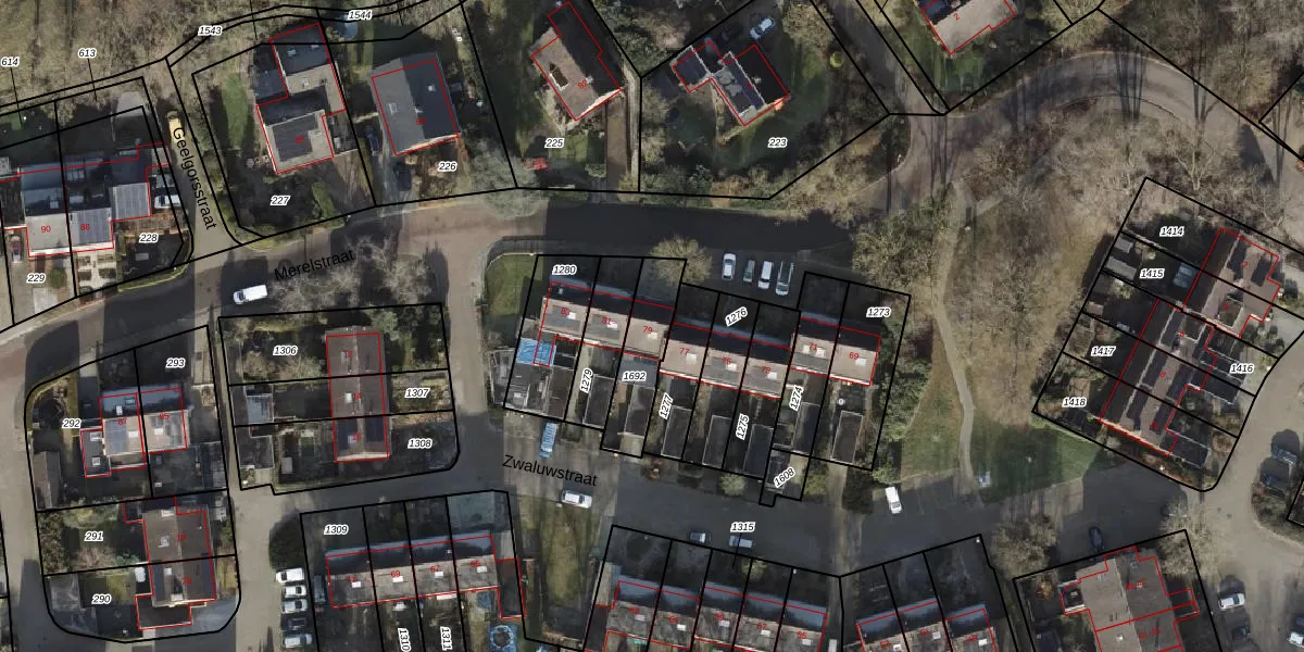 Gebruik de zoekbalk of klik op een perceel voor informatie over de adressen binnen dit perceel.