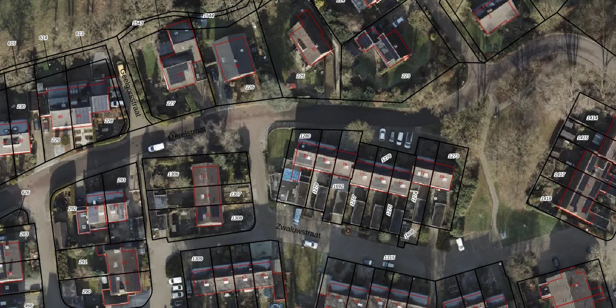Gebruik de zoekbalk of klik op een perceel voor informatie over de adressen binnen dit perceel.