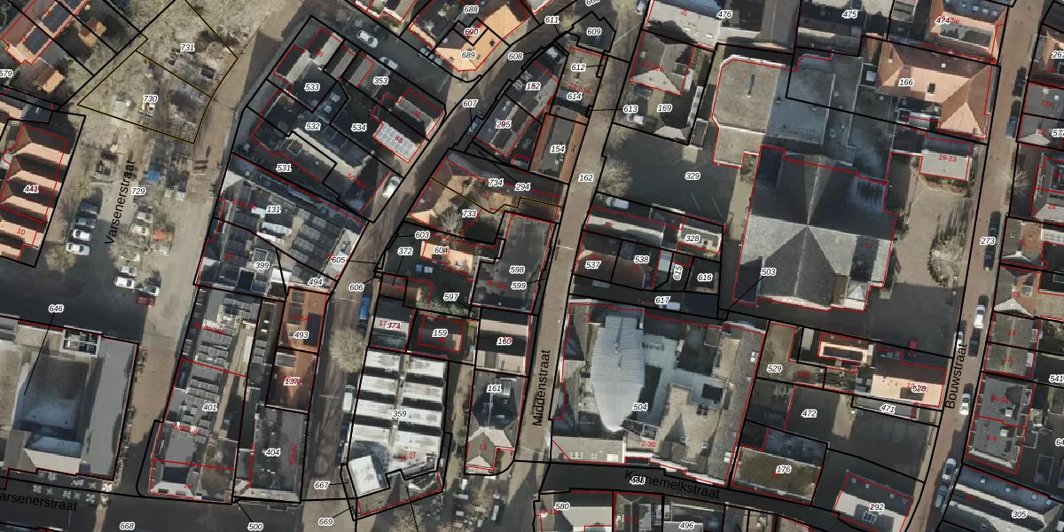 Het perceel waarop Middenstraat 16-a staat heeft een oppervlakte van 189 m². Dit is een middelgroot perceel. De perceeloppervlakte wordt geregistreerd door het Kadaster. Gedetailleerde informatie over de maten van dit perceel kunt u vinden in het rapport Kadastrale kaart met maatvoering van Middenstraat 16-a.