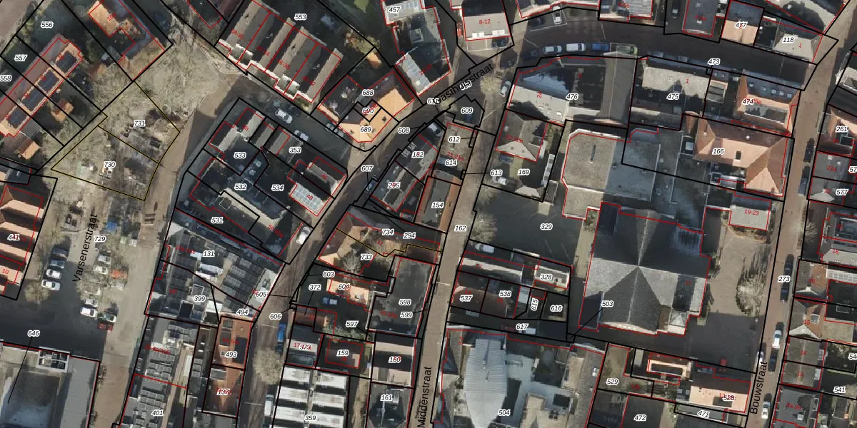 Het perceel waarop Middenstraat 18-b staat heeft een oppervlakte van 95 m². Dit is een klein perceel. De perceeloppervlakte wordt geregistreerd door het Kadaster. Gedetailleerde informatie over de maten van dit perceel kunt u vinden in het rapport Kadastrale kaart met maatvoering van Middenstraat 18-b.