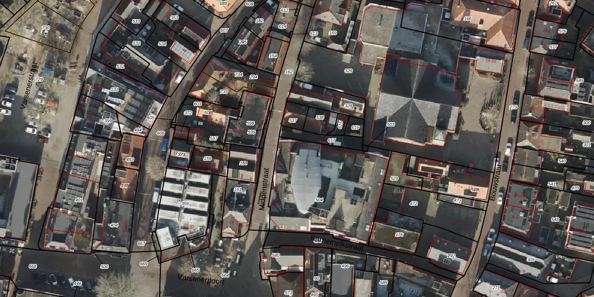Het perceel waarop Middenstraat 4 staat heeft een oppervlakte van 1132 m². Dit is een zeer groot perceel. De perceeloppervlakte wordt geregistreerd door het Kadaster. Gedetailleerde informatie over de maten van dit perceel kunt u vinden in het rapport Kadastrale kaart met maatvoering van Middenstraat 4.