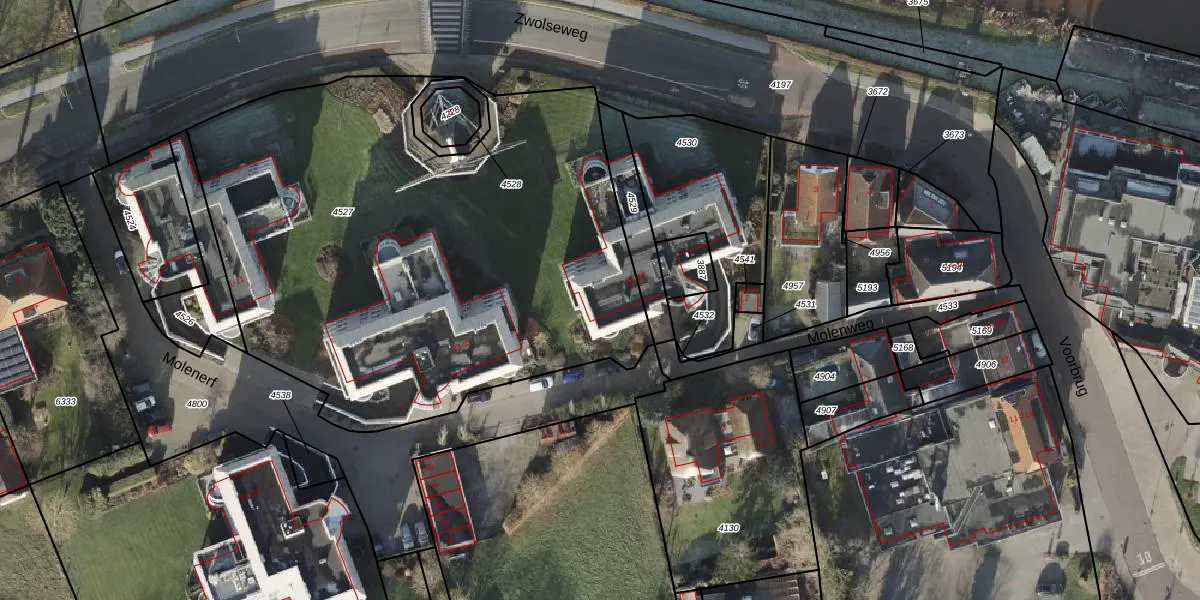 Het perceel waarop Molenerf 42 staat heeft een oppervlakte van 3279 m². Dit is een zeer groot perceel. De perceeloppervlakte wordt geregistreerd door het Kadaster. Gedetailleerde informatie over de maten van dit perceel kunt u vinden in het rapport Kadastrale kaart met maatvoering van Molenerf 42.