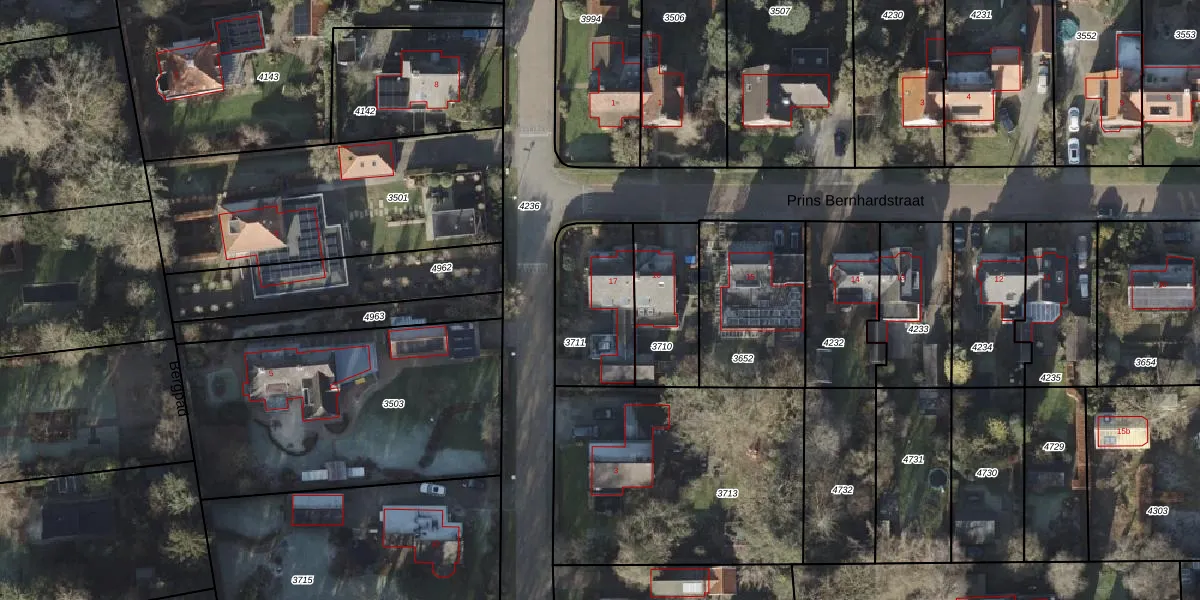 Gebruik de zoekbalk of klik op een perceel voor informatie over de adressen binnen dit perceel.