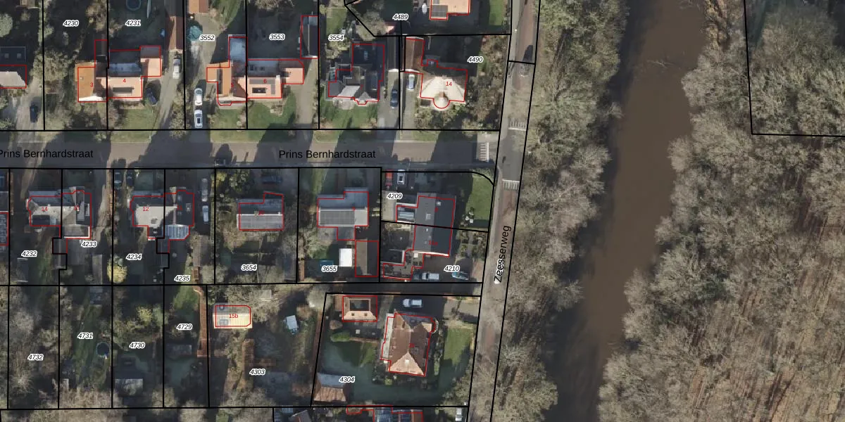 Het perceel waarop Prins Bernhardstraat 8 staat heeft een oppervlakte van 335 m². Dit is een groot perceel. De perceeloppervlakte wordt geregistreerd door het Kadaster. Gedetailleerde informatie over de maten van dit perceel kunt u vinden in het rapport Kadastrale kaart met maatvoering van Prins Bernhardstraat 8.