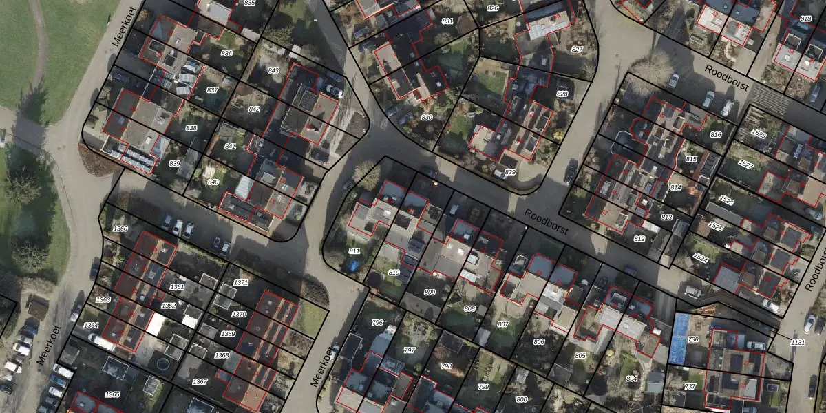 Gebruik de zoekbalk of klik op een perceel voor informatie over de adressen binnen dit perceel.