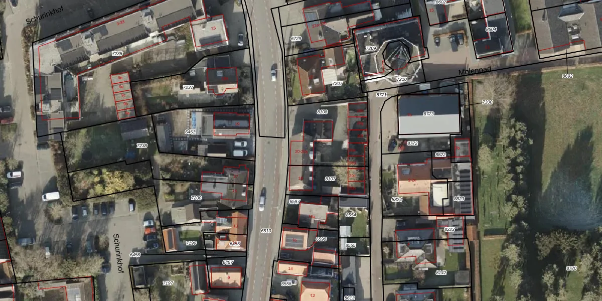 Het perceel waarop Schurinkstraat 20 staat heeft een oppervlakte van 570 m². Dit is een groot perceel. De perceeloppervlakte wordt geregistreerd door het Kadaster. Gedetailleerde informatie over de maten van dit perceel kunt u vinden in het rapport Kadastrale kaart met maatvoering van Schurinkstraat 20.