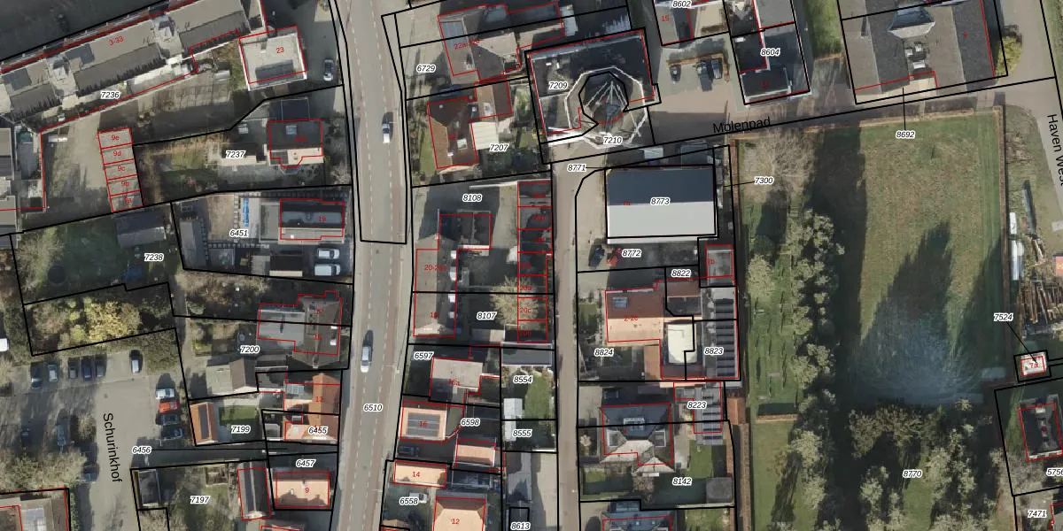 Schurinkstraat 20-e is gelegen op kadastraal perceel OMN02B8108. Deze kadastrale aanduiding is uniek en wordt gebruikt door het Kadaster om eigendomsrechten en andere zakelijke rechten vast te leggen. Het perceel maakt onderdeel uit van de kadastrale gemeente Stad-Ommen.