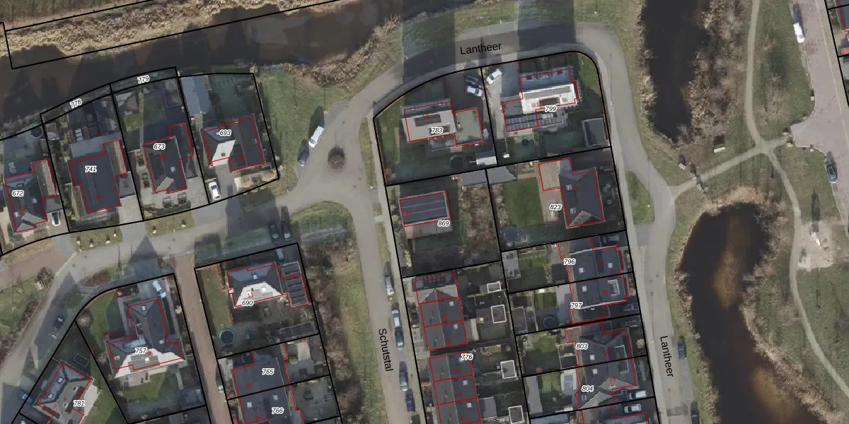 Het perceel waarop Schutstal 26 staat heeft een oppervlakte van 529 m². Dit is een groot perceel. De perceeloppervlakte wordt geregistreerd door het Kadaster. Gedetailleerde informatie over de maten van dit perceel kunt u vinden in het rapport Kadastrale kaart met maatvoering van Schutstal 26.
