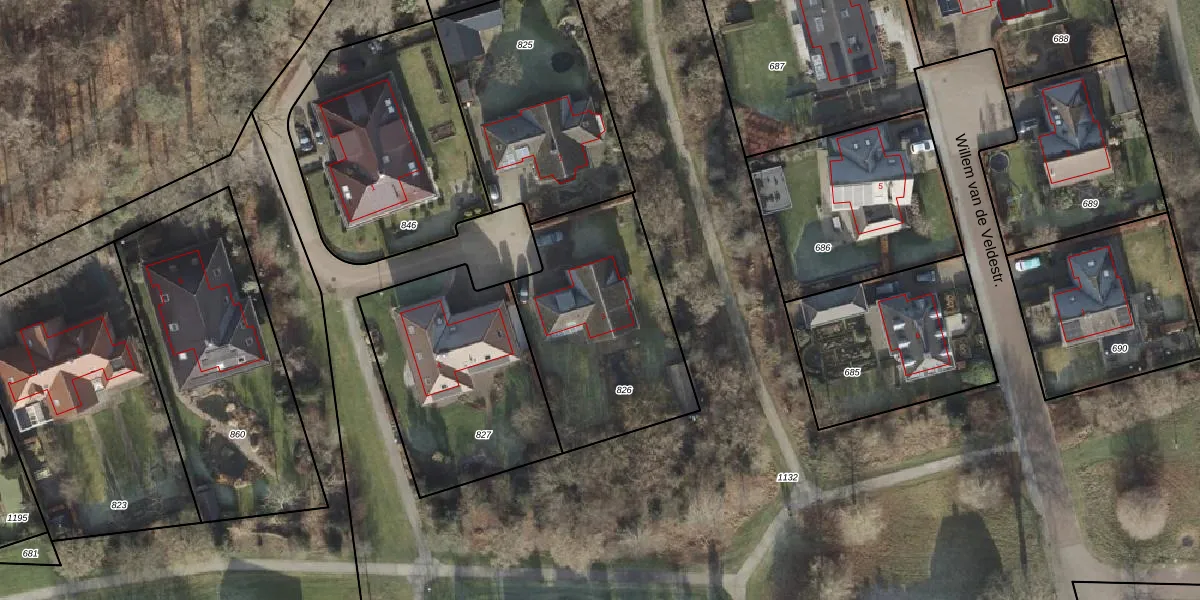 Gebruik de zoekbalk of klik op een perceel voor informatie over de adressen binnen dit perceel.