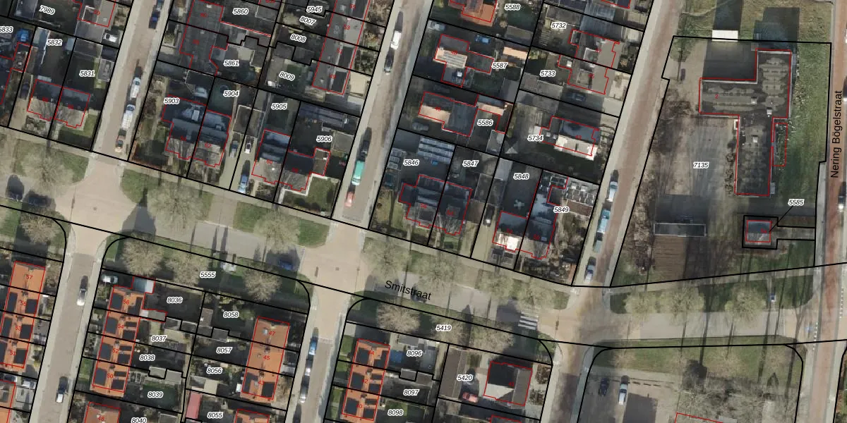 Het perceel waarop Smitstraat 56 staat heeft een oppervlakte van 362 m². Dit is een groot perceel. De perceeloppervlakte wordt geregistreerd door het Kadaster. Gedetailleerde informatie over de maten van dit perceel kunt u vinden in het rapport Kadastrale kaart met maatvoering van Smitstraat 56.