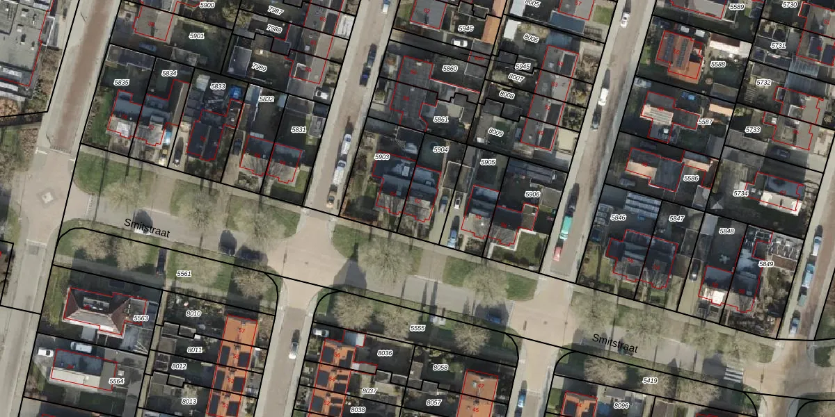 Het perceel waarop Smitstraat 62 staat heeft een oppervlakte van 263 m². Dit is een middelgroot perceel. De perceeloppervlakte wordt geregistreerd door het Kadaster. Gedetailleerde informatie over de maten van dit perceel kunt u vinden in het rapport Kadastrale kaart met maatvoering van Smitstraat 62.