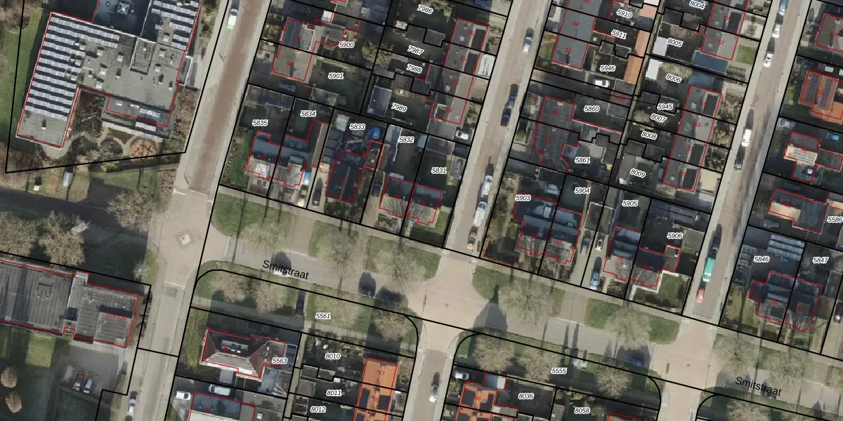 Gebruik de zoekbalk of klik op een perceel voor informatie over de adressen binnen dit perceel.