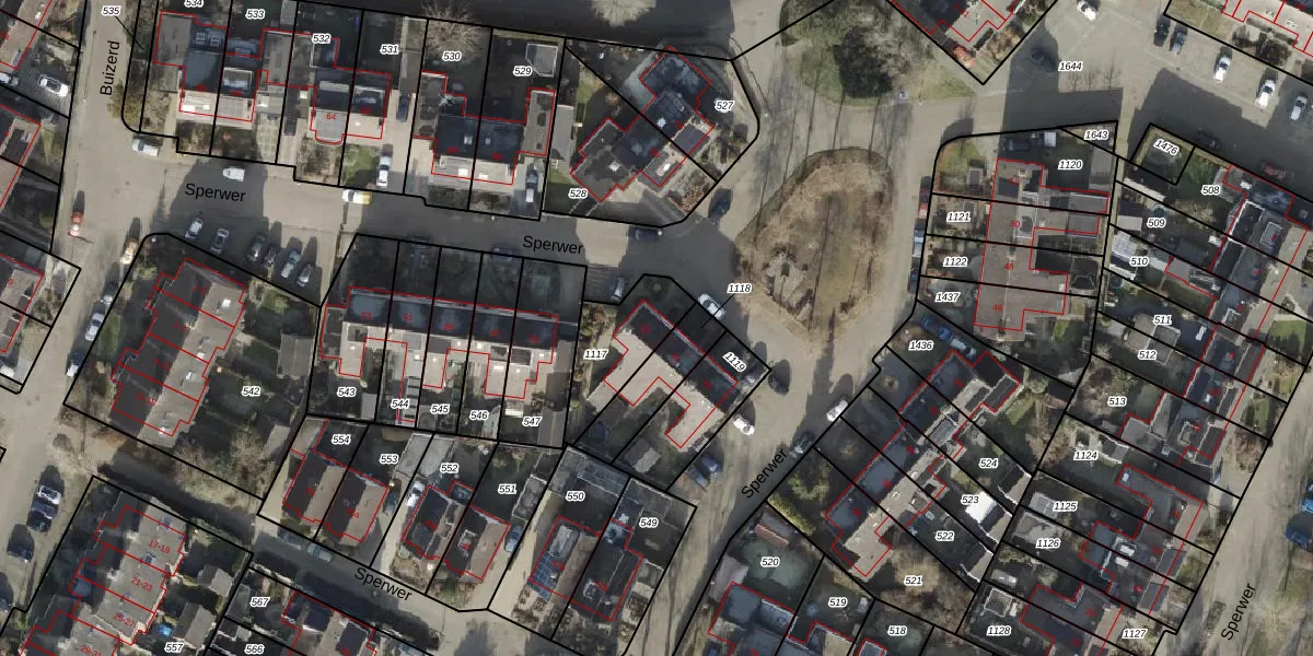 Gebruik de zoekbalk of klik op een perceel voor informatie over de adressen binnen dit perceel.