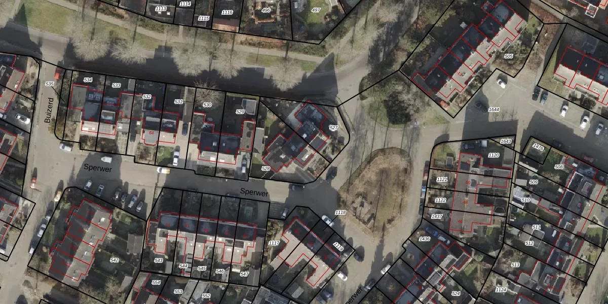 Gebruik de zoekbalk of klik op een perceel voor informatie over de adressen binnen dit perceel.