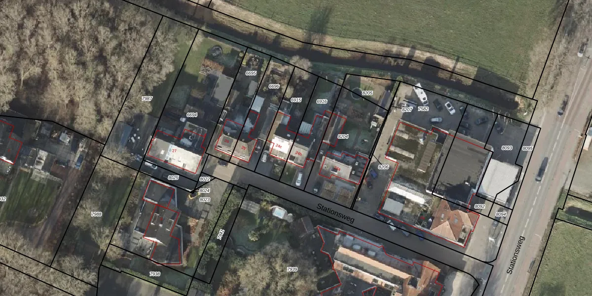 Het perceel waarop Stationsweg 24-b staat heeft een oppervlakte van 343 m². Dit is een groot perceel. De perceeloppervlakte wordt geregistreerd door het Kadaster. Gedetailleerde informatie over de maten van dit perceel kunt u vinden in het rapport Kadastrale kaart met maatvoering van Stationsweg 24-b.