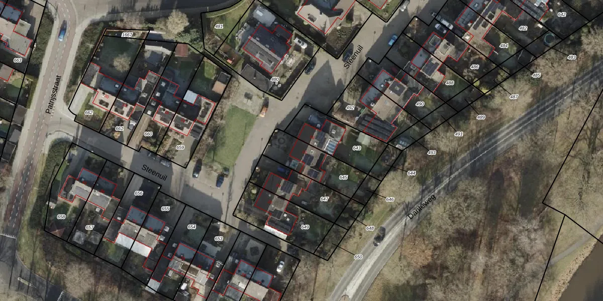 Gebruik de zoekbalk of klik op een perceel voor informatie over de adressen binnen dit perceel.