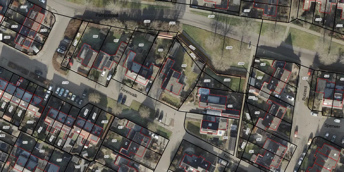 Het perceel waarop Torenvalk 9 staat heeft een oppervlakte van 707 m². Dit is een groot perceel. De perceeloppervlakte wordt geregistreerd door het Kadaster. Gedetailleerde informatie over de maten van dit perceel kunt u vinden in het rapport Kadastrale kaart met maatvoering van Torenvalk 9.