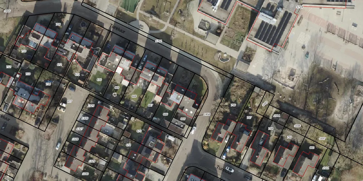 Het perceel waarop Tureluur 11 staat heeft een oppervlakte van 345 m². Dit is een groot perceel. De perceeloppervlakte wordt geregistreerd door het Kadaster. Gedetailleerde informatie over de maten van dit perceel kunt u vinden in het rapport Kadastrale kaart met maatvoering van Tureluur 11.