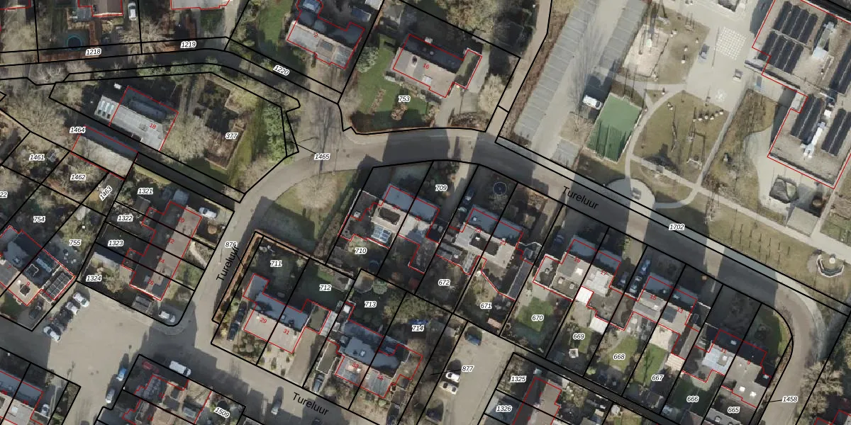 Het perceel waarop Tureluur 25 staat heeft een oppervlakte van 321 m². Dit is een groot perceel. De perceeloppervlakte wordt geregistreerd door het Kadaster. Gedetailleerde informatie over de maten van dit perceel kunt u vinden in het rapport Kadastrale kaart met maatvoering van Tureluur 25.