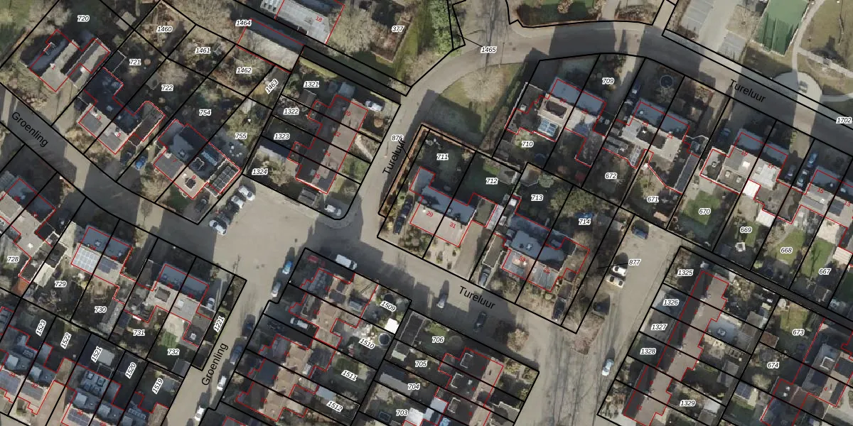 Het perceel waarop Tureluur 29 staat heeft een oppervlakte van 335 m². Dit is een groot perceel. De perceeloppervlakte wordt geregistreerd door het Kadaster. Gedetailleerde informatie over de maten van dit perceel kunt u vinden in het rapport Kadastrale kaart met maatvoering van Tureluur 29.