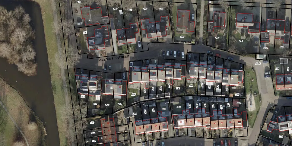 Gebruik de zoekbalk of klik op een perceel voor informatie over de adressen binnen dit perceel.