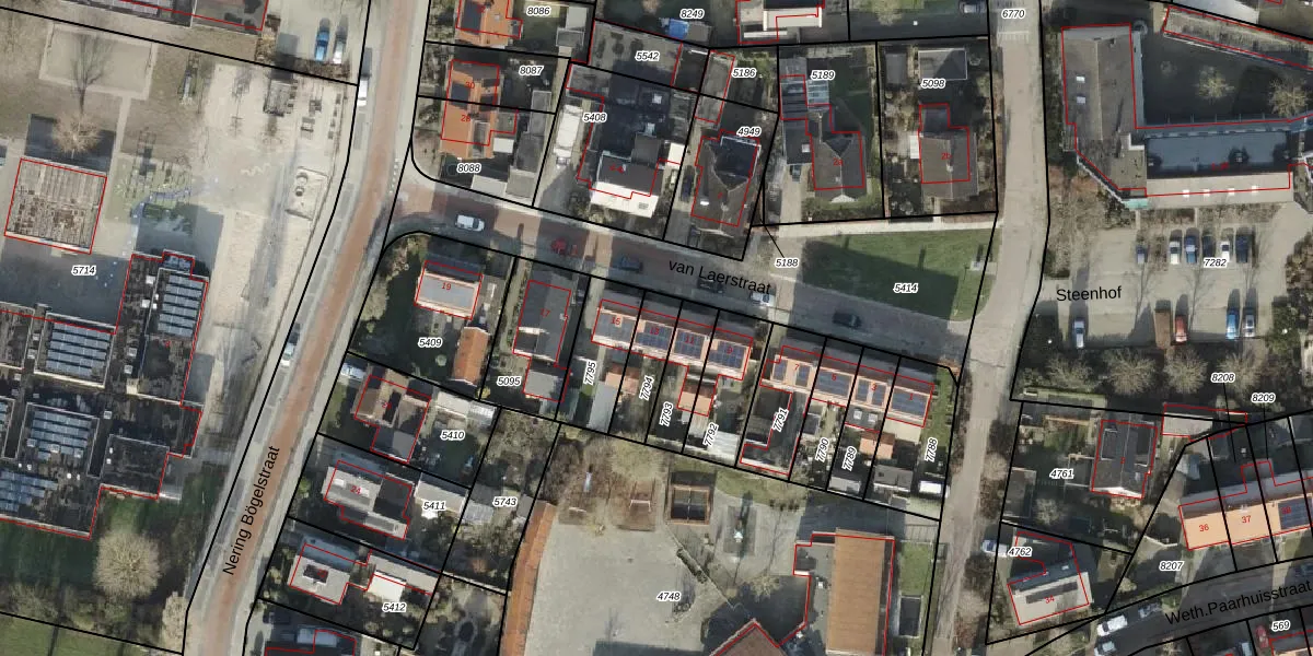 van Laerstraat 13 is gelegen op kadastraal perceel OMN02B7794. Deze kadastrale aanduiding is uniek en wordt gebruikt door het Kadaster om eigendomsrechten en andere zakelijke rechten vast te leggen. Het perceel maakt onderdeel uit van de kadastrale gemeente Stad-Ommen.