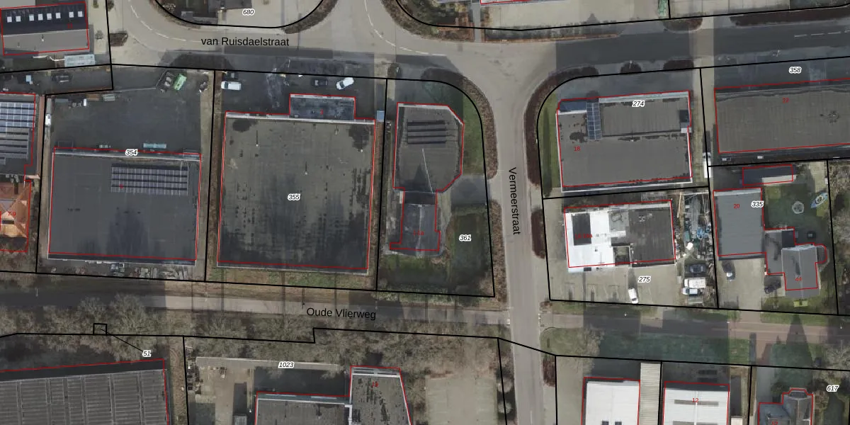 Het perceel waarop van Ruisdaelstraat 1 staat heeft een oppervlakte van 1202 m². Dit is een zeer groot perceel. De perceeloppervlakte wordt geregistreerd door het Kadaster. Gedetailleerde informatie over de maten van dit perceel kunt u vinden in het rapport Kadastrale kaart met maatvoering van van Ruisdaelstraat 1.